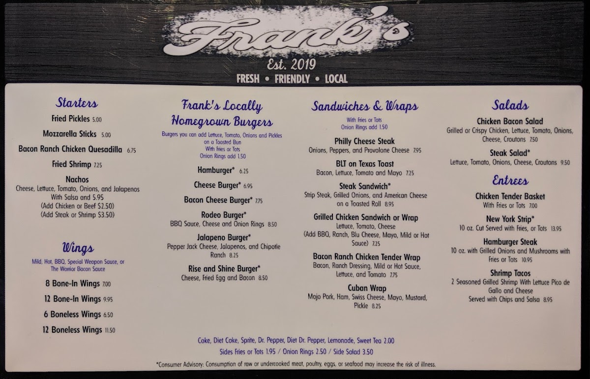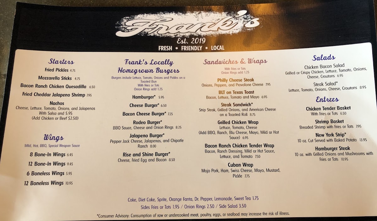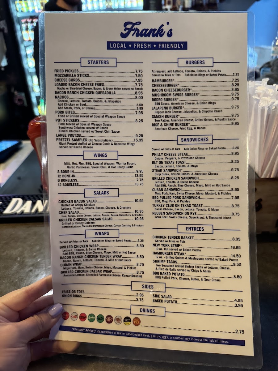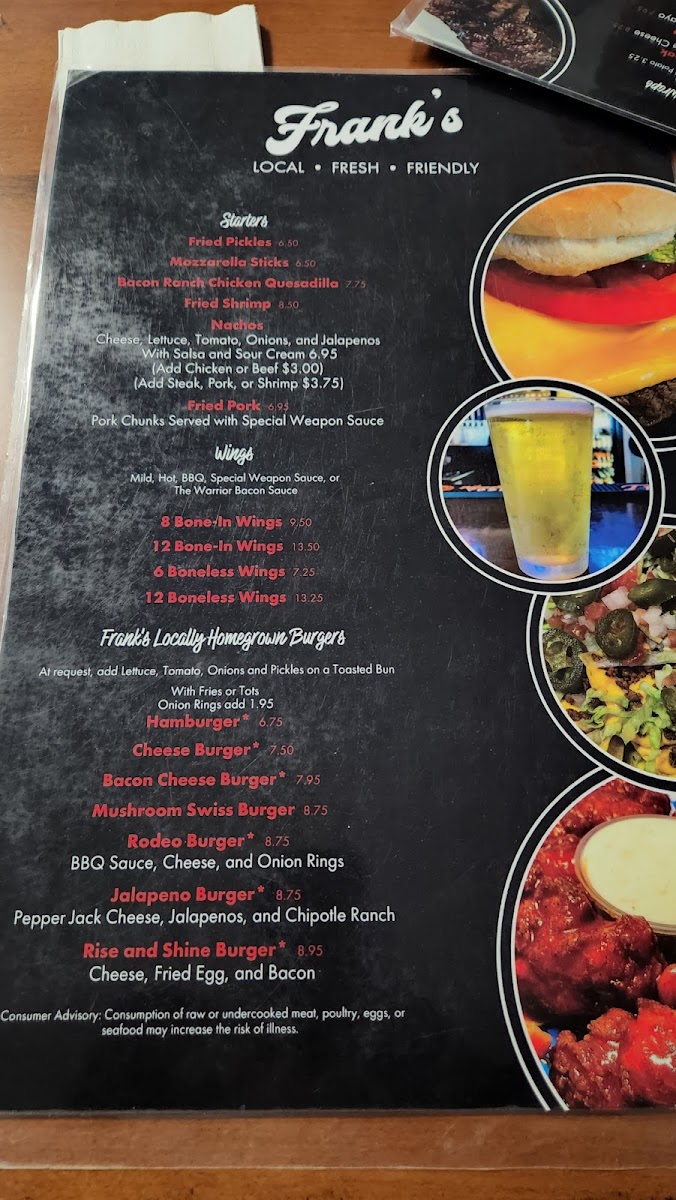 What elevates Frank’s is the welcoming atmosphere paired with attentive service, creating a local favorite for casual gatherings. Customer favorites highlight the quality and consistency — from crispy, well-cooked sides like tots and fries to accommodating vegan options. Whether you're in for a cold beer, a filling meal, or good company, Frank’s delivers genuine hospitality and a solid menu worth savoring.